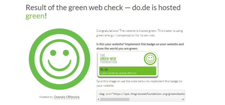 - Grün bedeutet, dass bei der Webseite Strom aus erneuerbaren Energien verwendet wird